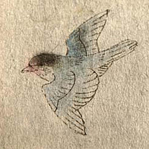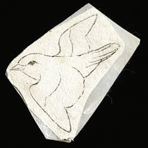 半紙に下書きした鳥を貝にヤマトノリで貼ります。